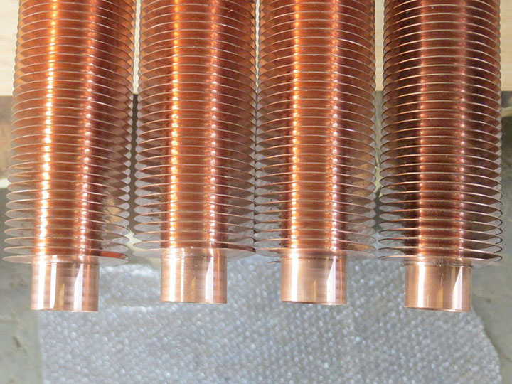 銅翅片管是指基管是優(yōu)質紫銅管,通過專用繞片機,把優(yōu)質紫銅帶緊密均勻地纏繞在基管外表面,然后整體搪錫。繞片式銅管銅片翅片管,工作溫度:-10℃-+160℃。
