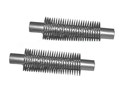 鋼制繞片螺旋翅片管是采用直繞式加工工藝,即在一根優(yōu)質(zhì)無縫鋼管上,通過專用繞片機,把優(yōu)質(zhì)鋼帶靠機械力緊密、均勻地纏繞在基管外表面,兩端進行點焊固定;然后將鋼制繞片翅片管整體進行熱鍍鋅處理。