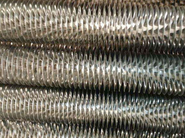 2、由于單金屬翅片管是依靠底部皺褶均勻的站立于基管上,底部皺褶可以對管外空氣起到一定的擾流作用,對強化傳熱有好處。同時,底部皺褶也增加了氣體側(cè)阻力,并在皺褶處易產(chǎn)生積灰等現(xiàn)象,為冷凝液的排除及粉塵的清理增加了難度,選用時必須注意。